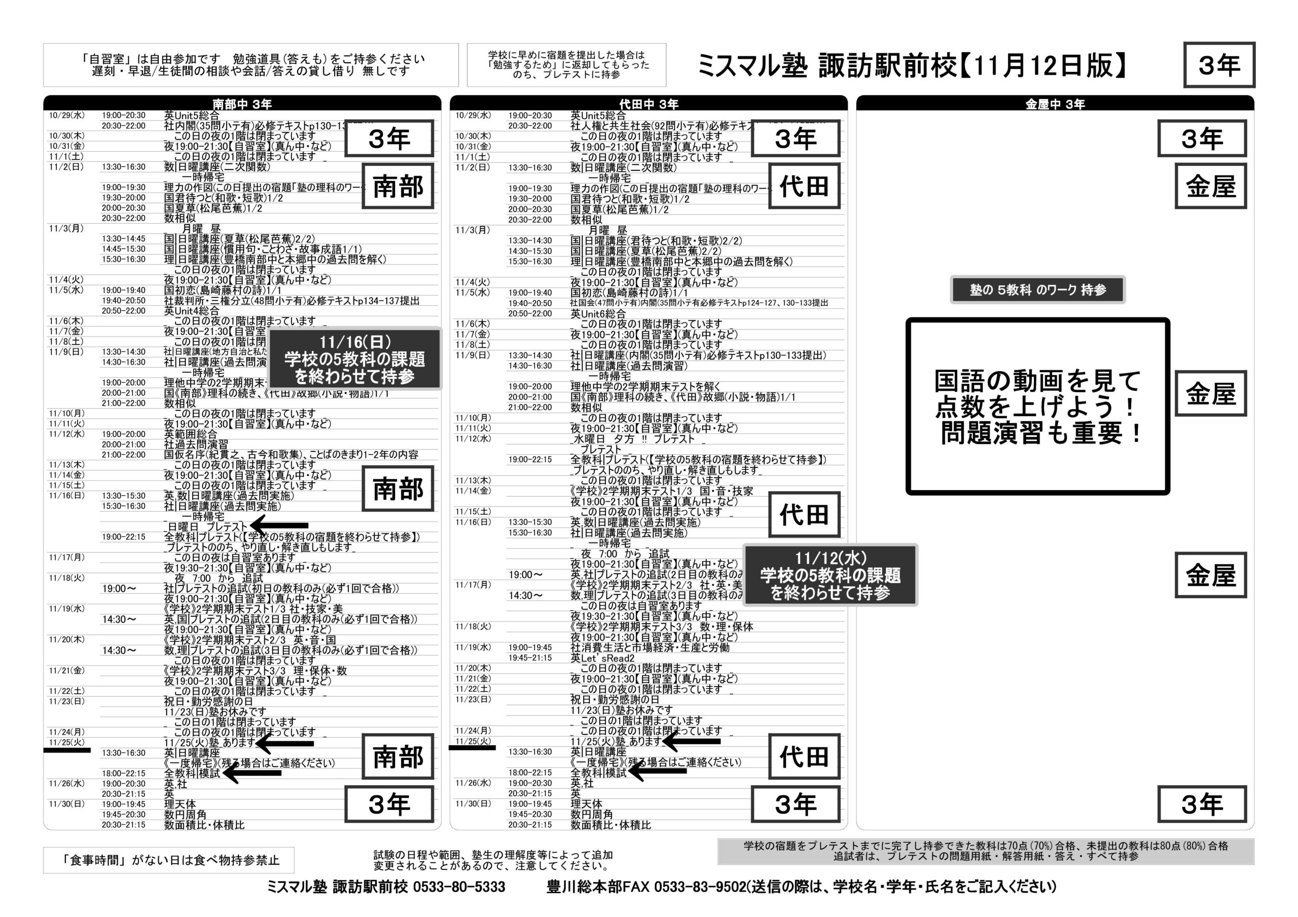~2学期中間テスト、9月-10月のテスト ミスマル塾🌈まとめ!🌈~