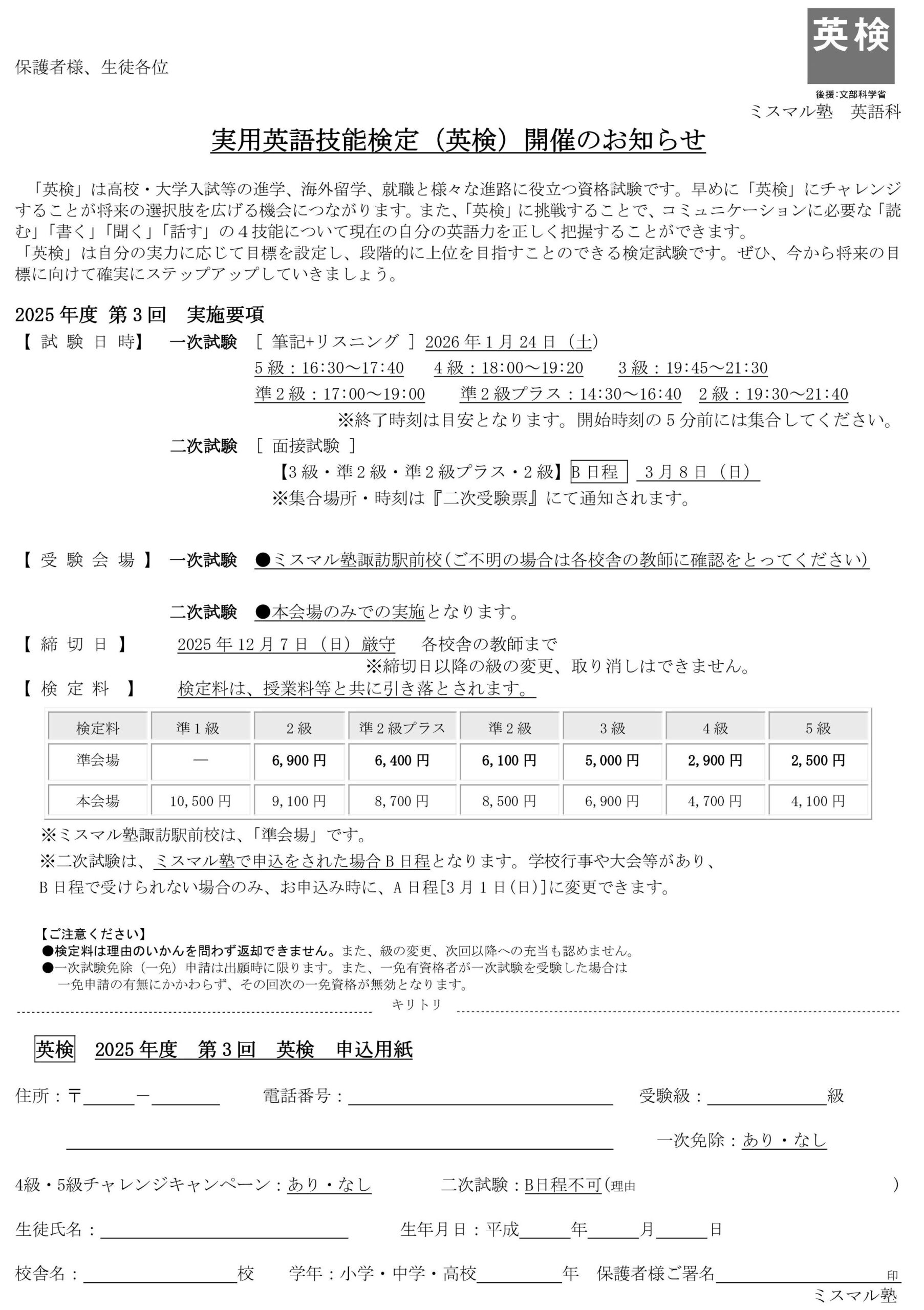 お問い合わせは電話0533-80-5333(諏訪駅前校)まで。